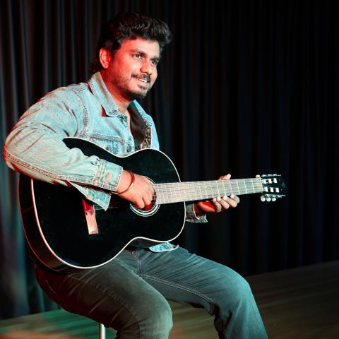 He comes from an well mannered upper middle class nuclear family with traditional values living in Tiruvannamalai.